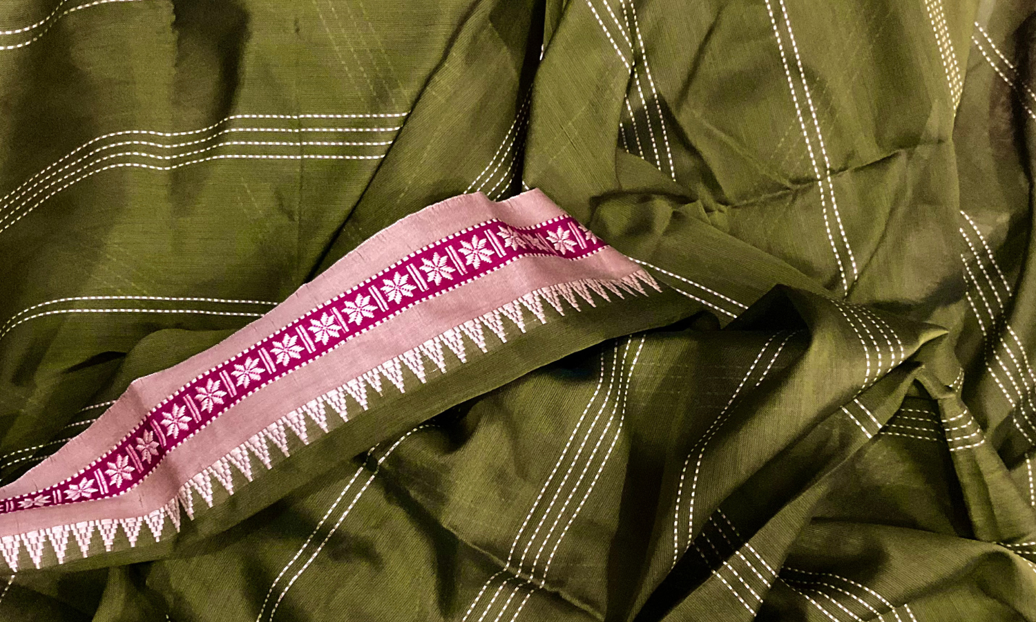 The Gadwal weave – silk body, contrasting borders, and seamless joinery in...